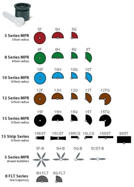 »  – Boquilla MPR de 8 pies con patrón de círculo completo. – Tasas de precipitación igualadas entre series y