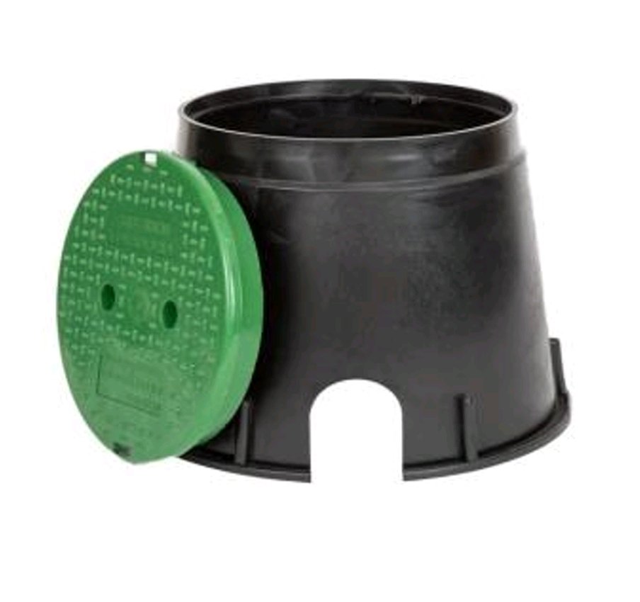 Registro circular de 10″. Tamaño M. Altura 25cm. Diámetro inferior 35cm. Entran 02 válvulas de 1″ o 01 válvula de 2″.
