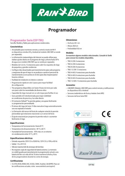 El controlador de riego PRO-LC está repleto de funciones, es fácil de usar y ahora es un controlador listo para Wi-Fi. El módulo Wi-Fi BRIDGE opcional, que se vende por separado, permite el control desde su teléfono inteligente o tableta. El PRO-LC está diseñado para aplicaciones residenciales y comerciales.