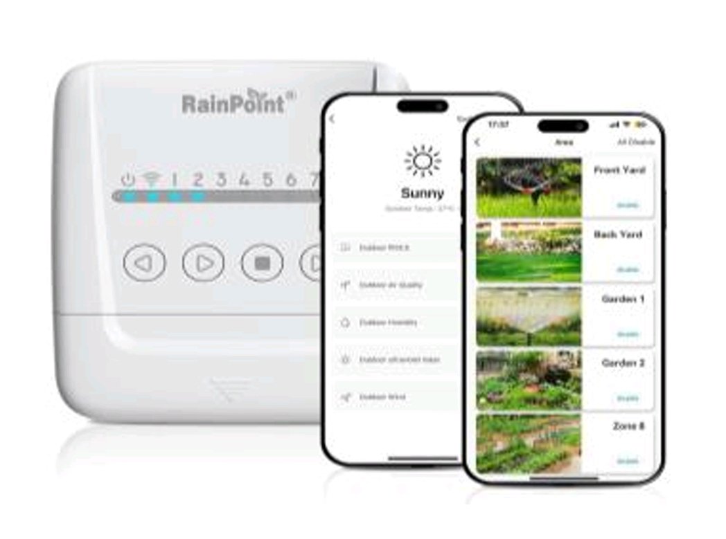 Controlador Rainpoint 8 zonas con WIFI integrado, con trasformador externo 220/24VAC incluido. App para smartphone.